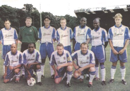 Back Row: Paul Barnes, Patrick Kenny, Andy Woodward, Ian Lawson, Chris Billy, Adrian Littlejohn, Paul Challinor. Front Row: Lutel James, Paul Williams, Nick Daws(captain) , Darren Bullock
